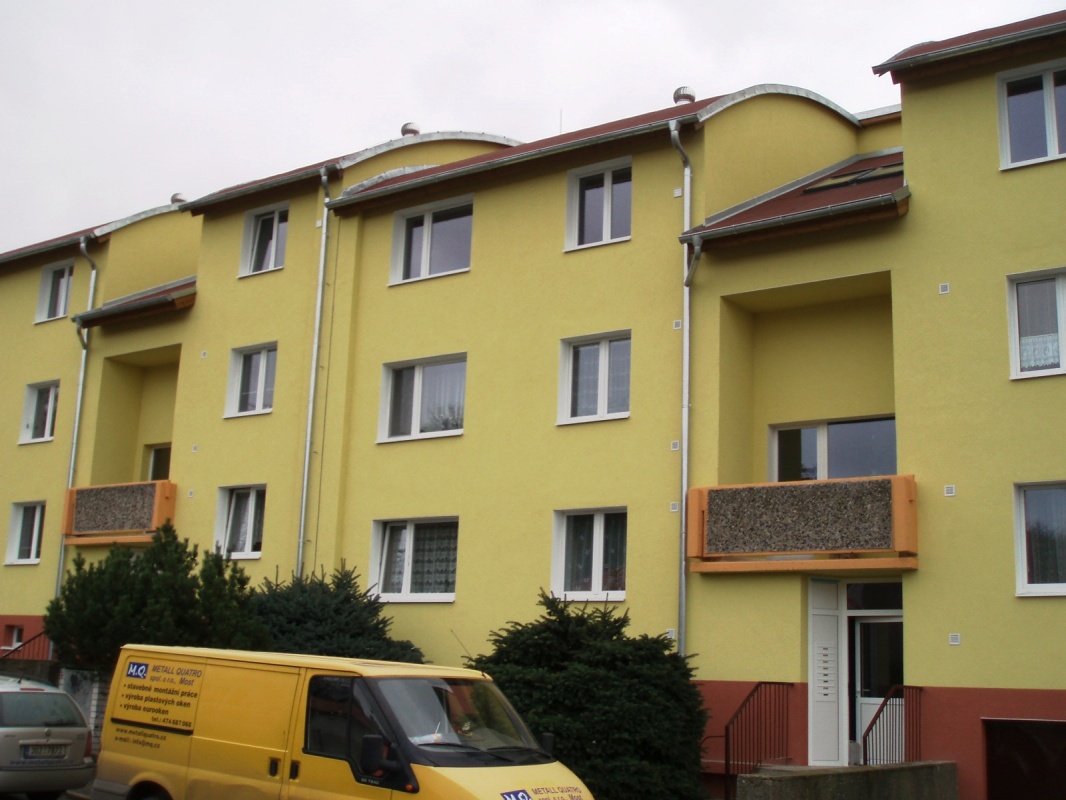 Střešní nástavba panelových domů - Březno čp. 355 a 356Vybudování 4 nových bytových jednotek, sanace a komplexní zateplení objektu